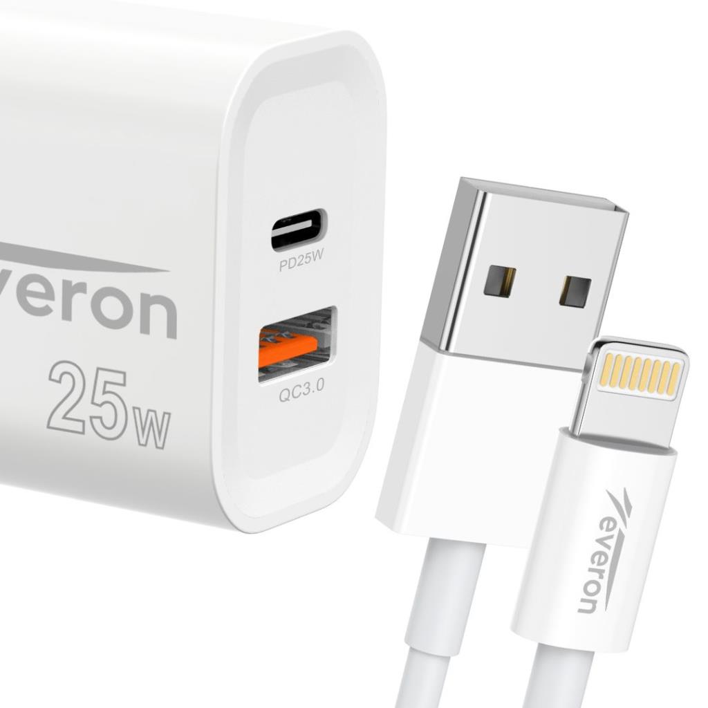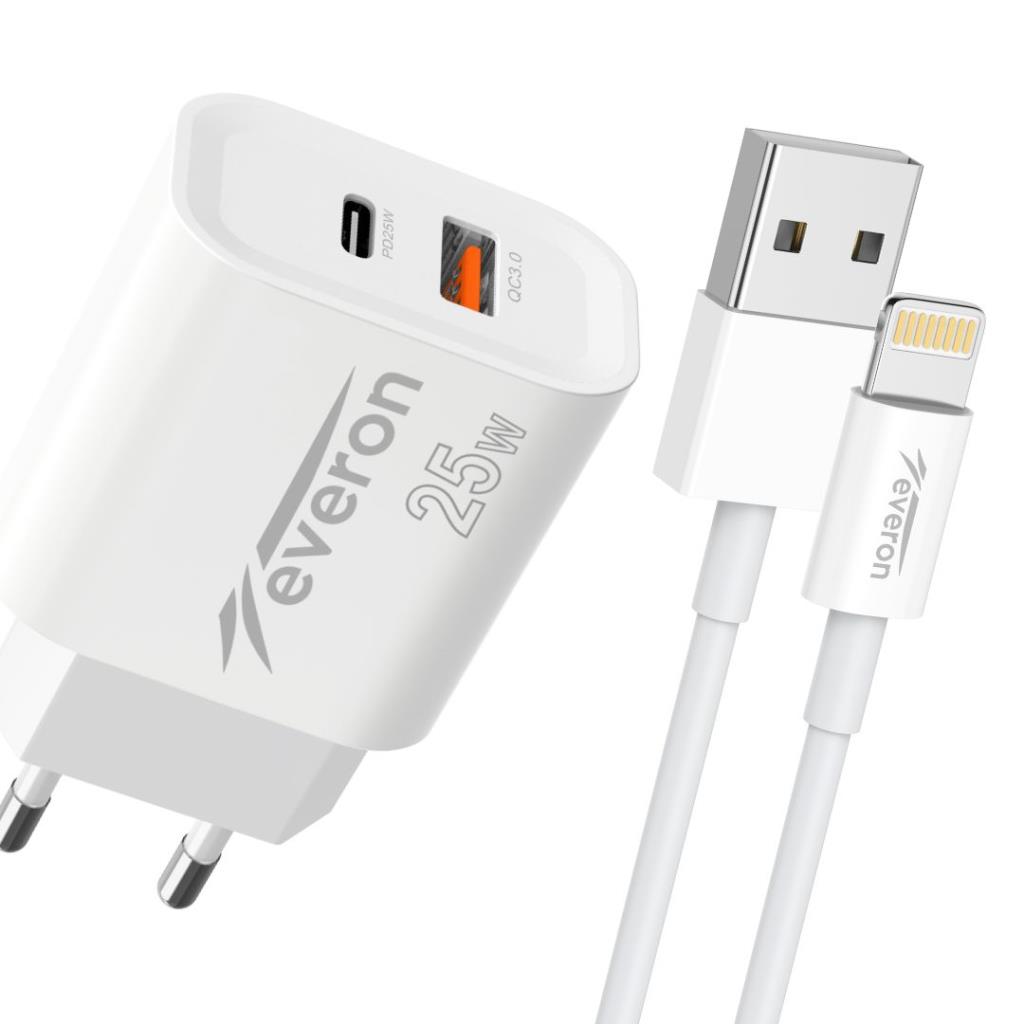EVERON Android 25W PD+USB Dual Fast Kablolu Güç Adaptörü Takım Şarj Başlığı EVR-023-I