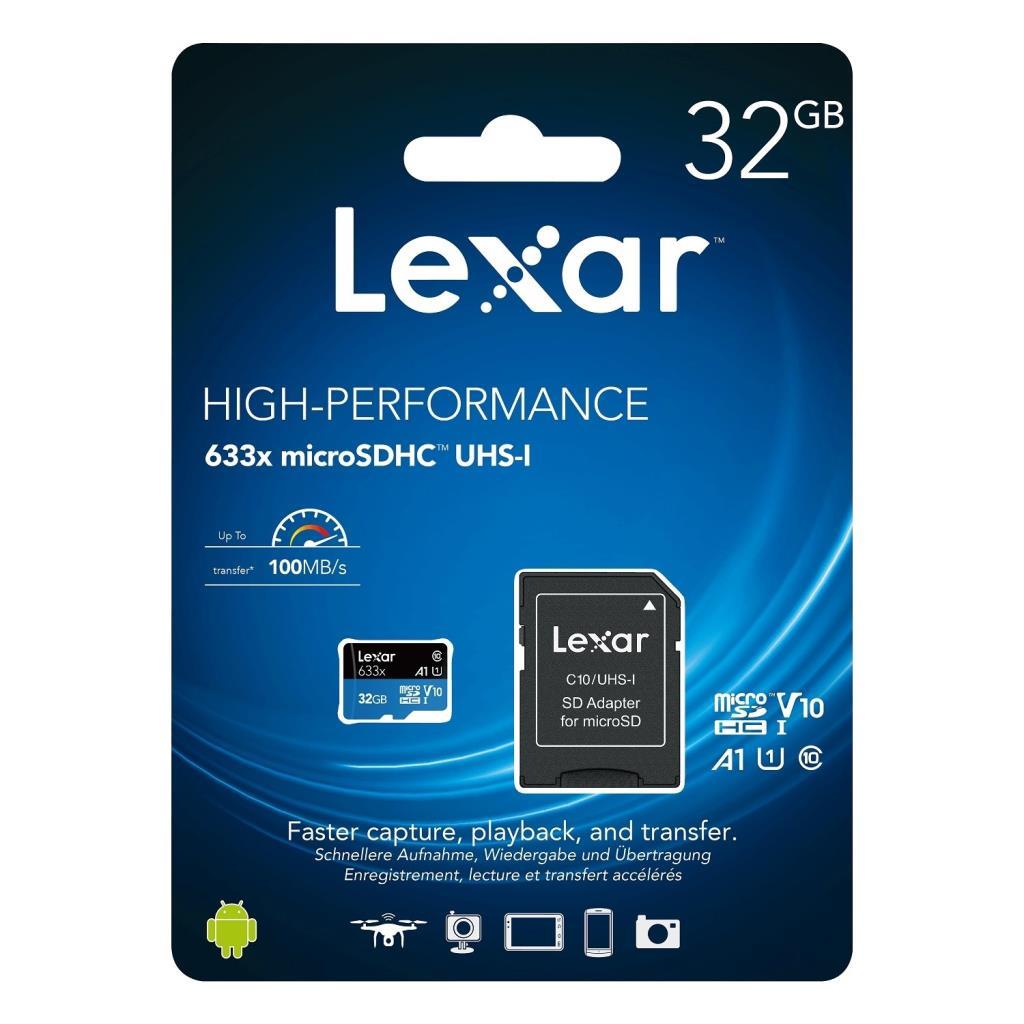 Lexar 633X 32GB 100MB-20MB/s microSDHC UHS-1 Class 10 A1 V10 U1 Hafıza Kartı + Adaptör (LSDMI32GBB633A)