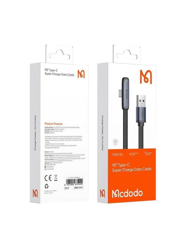 Mcdodo CA-3340 Type-C 100W 90° Açılı Hızlı Şarj & Data Kablosu 6A 1.2m – Siyah Ürün Özellikleri