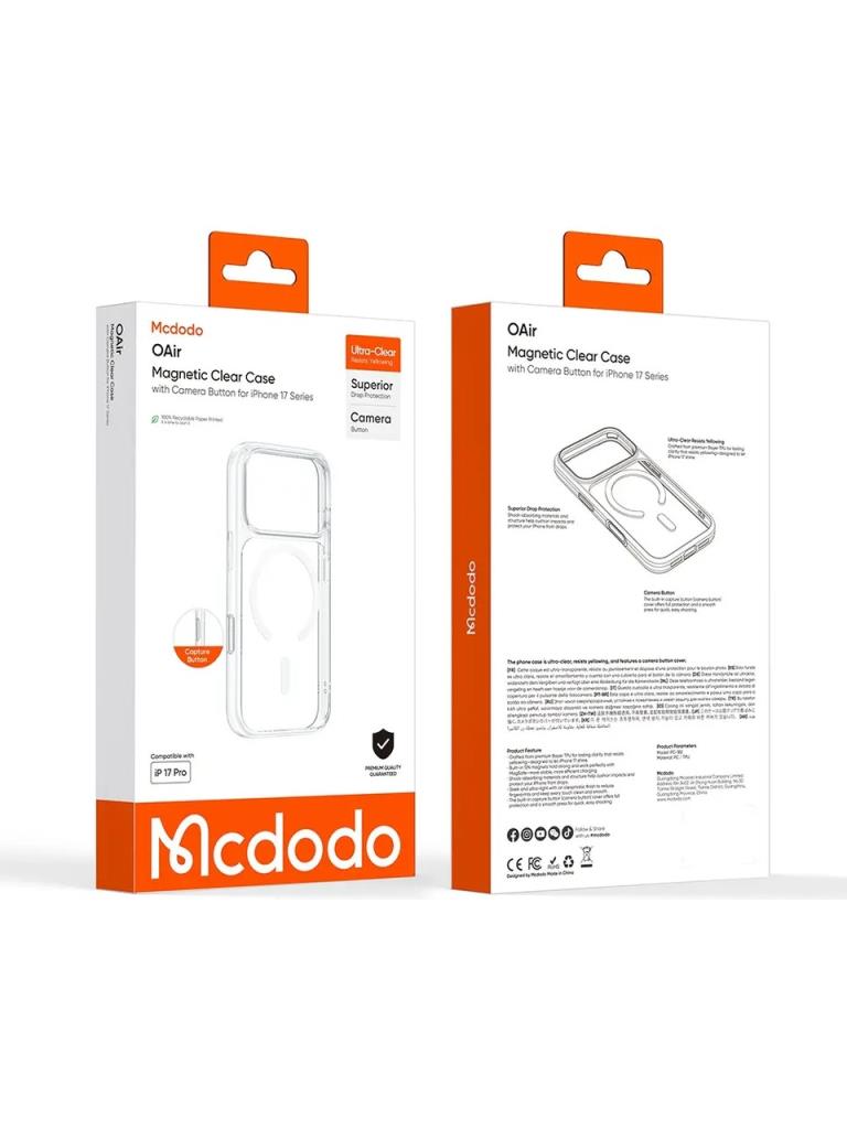 Mcdodo Kamera Düğmeli Manyetik Şeffaf Kılıf | iPhone 17 Pro için | Ultra-Clear | Sararmaya Dirençli | Üstün Düşme Koruması