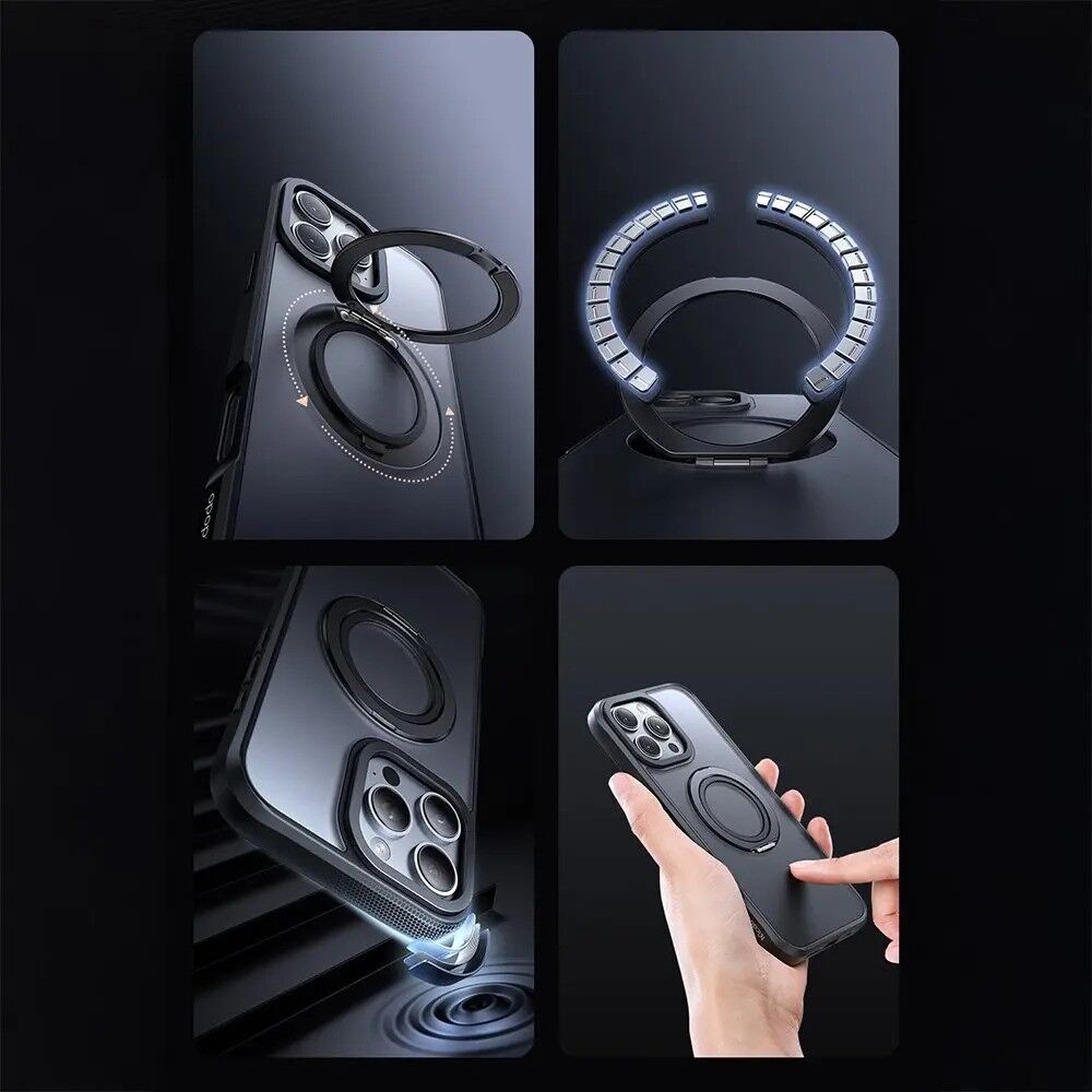 PC-4932 IPHONE 16 PRO HALKA STANDLI MAGSAFE SİYAH KAPAK